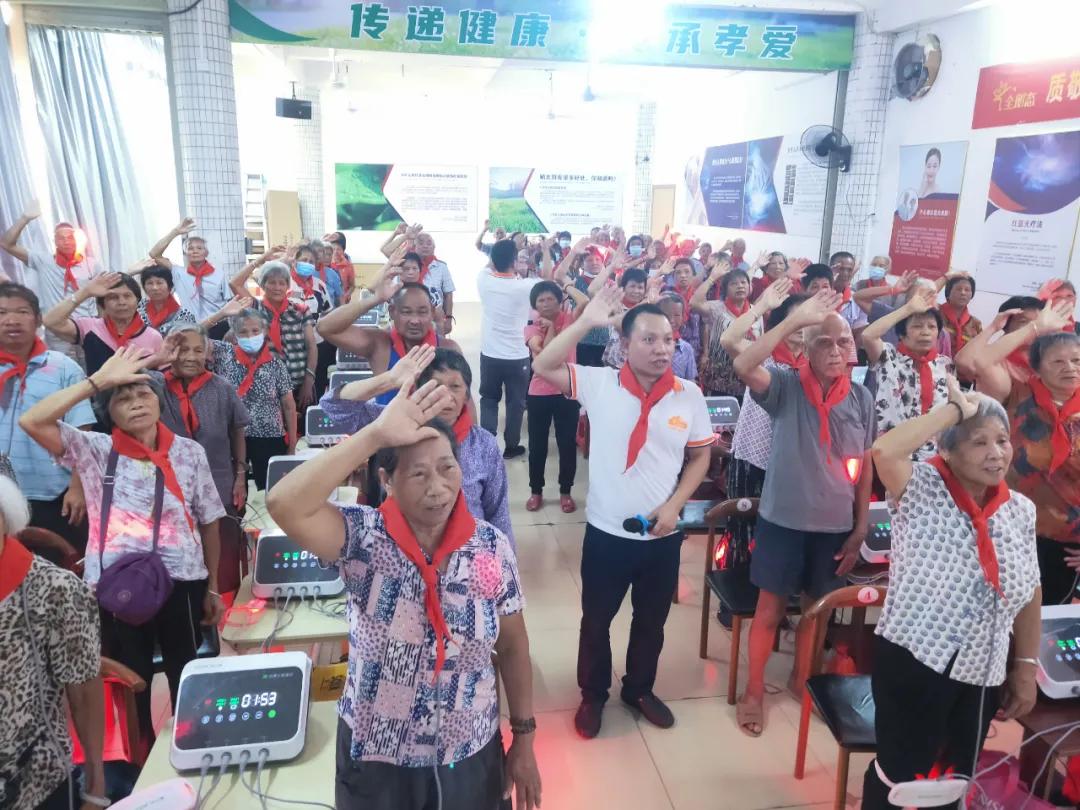 阳春智慧健康e家 带领顾客宣誓:永葆童心,智慧生活,我宣誓争做一位健康快乐的“老顽童”,为健康中国加油,为太阳成集团tyc7111cc智慧健康行动计划助力,快乐起来、健康起来、幸福起来!